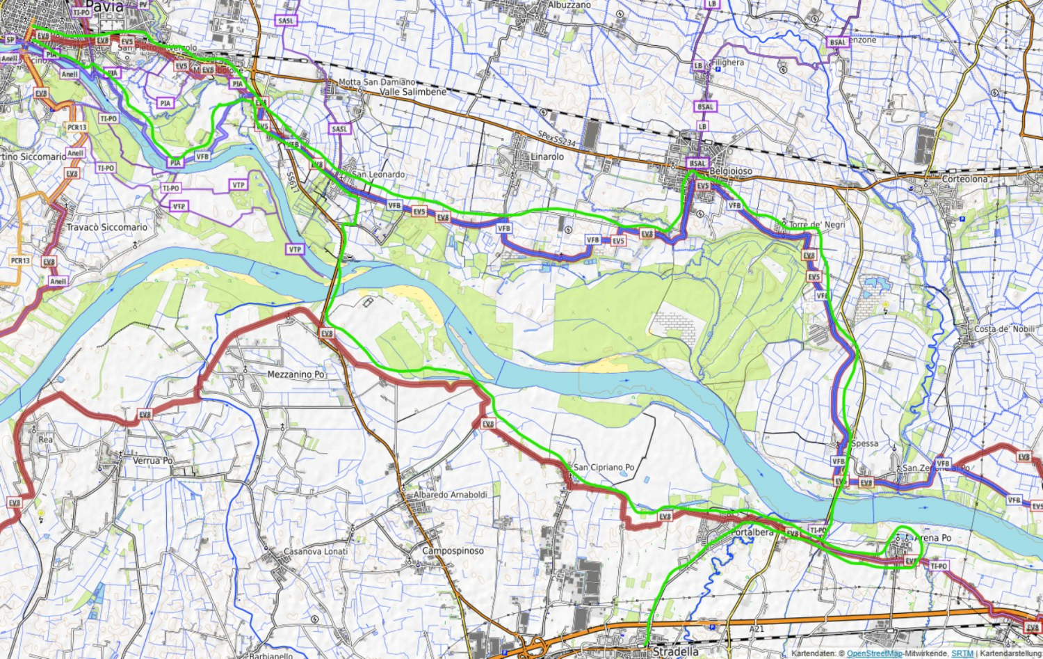 Dalla stazione di Stradella partiamo in direzione di Portalbera e Arena Po, visita al MAAAPO - Museo Arte Ambiente Arena Po è aperto tutto l’anno e completamente gratuito. Ritorniamo a Portalbera e proseguiamo per Pavia attraversando il Po e il Ticino sul vecchio ponte di ferro della Becca.